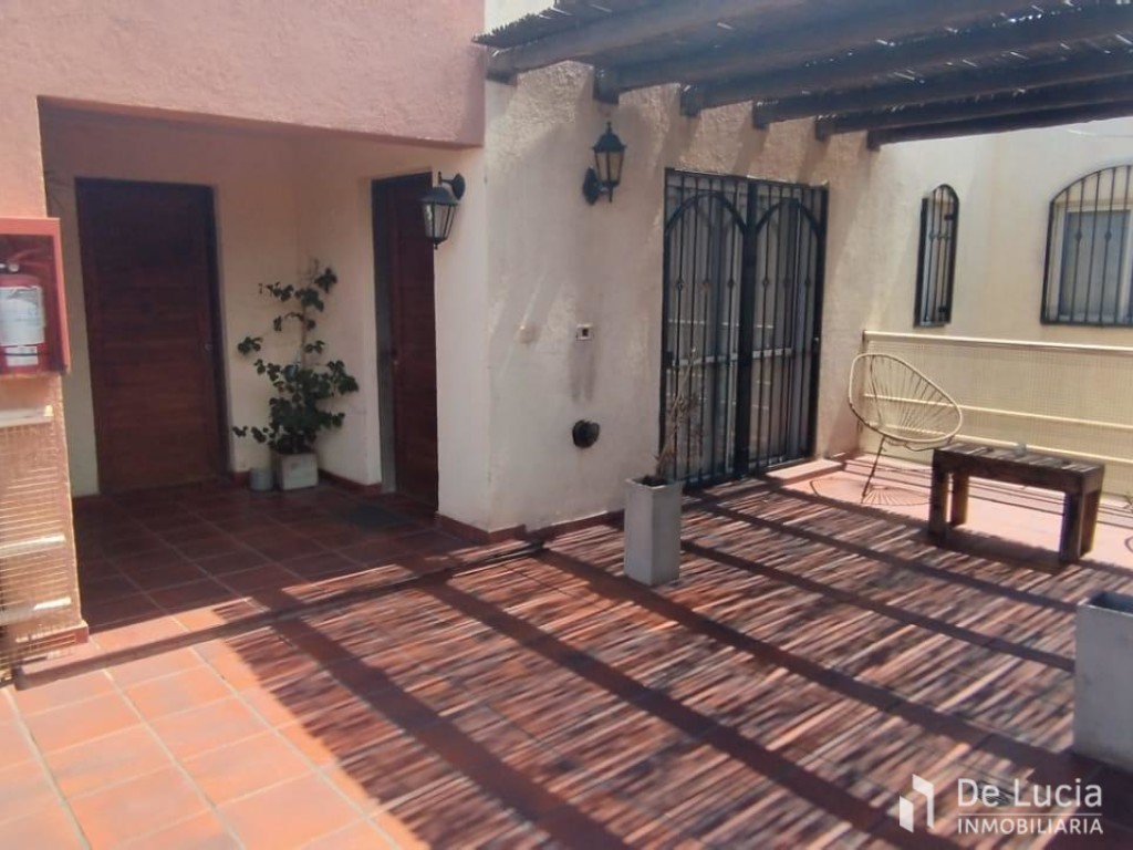 El departamento se desarrolla en planta alta y ofrece amplios y luminosos espacios, distribuidos de la siguiente manera: